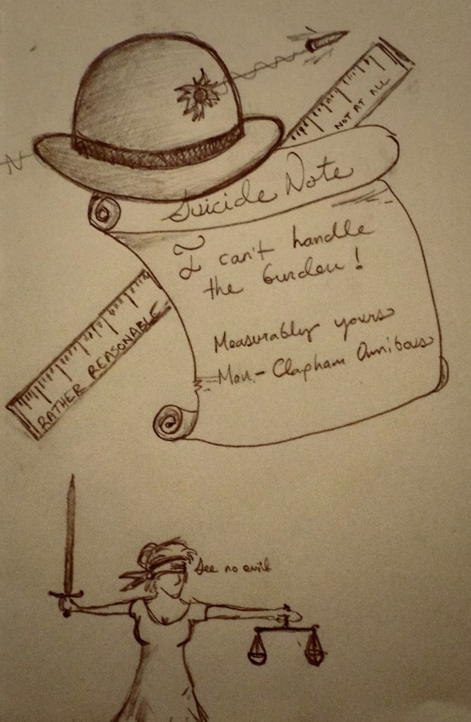 The ‘Man on the Clapham Omnibus’ is an hypothetical reasonable, ordinary person used in English law courts as a standard to judge the actions of real people in given situations — particularly to determine negligence or liability. For example, Would The Man on the Clapham Omnibus foresee that his broken gate might injure the neighbour’s dog?